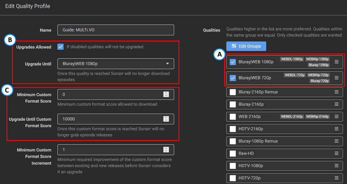 Custom Format Trash ID VOSTFR Profile Score MULTi.VO Profile Score